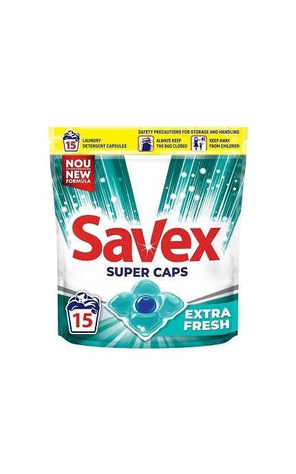 Капсули Savex Premium Caps Extra Fresh забезпечують чудове прання та видаляють стійкі плями. Спростіть процедуру прання, використовуючи попередньо відмірені капсули для прання, які легко та ефективно забезпечують визначні результати.